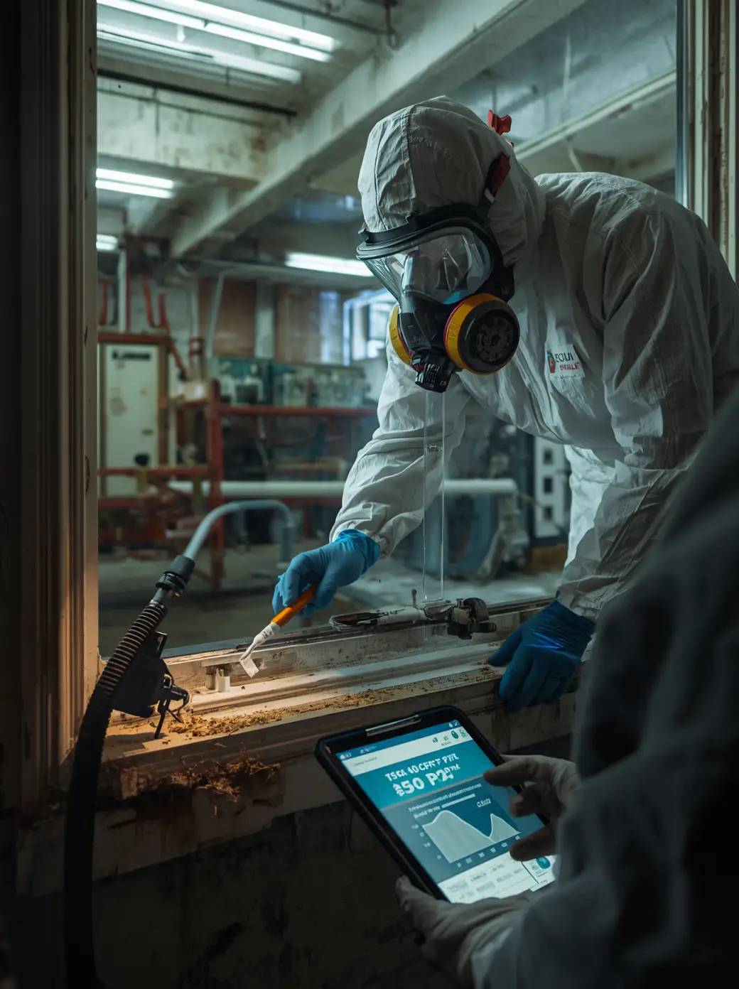 PCB exposure monitoring for environmental remediation workers at contaminated industrial sites across the Houston metro area. Personal air monitoring, surface wipe clearance testing, and PCB waste classification.